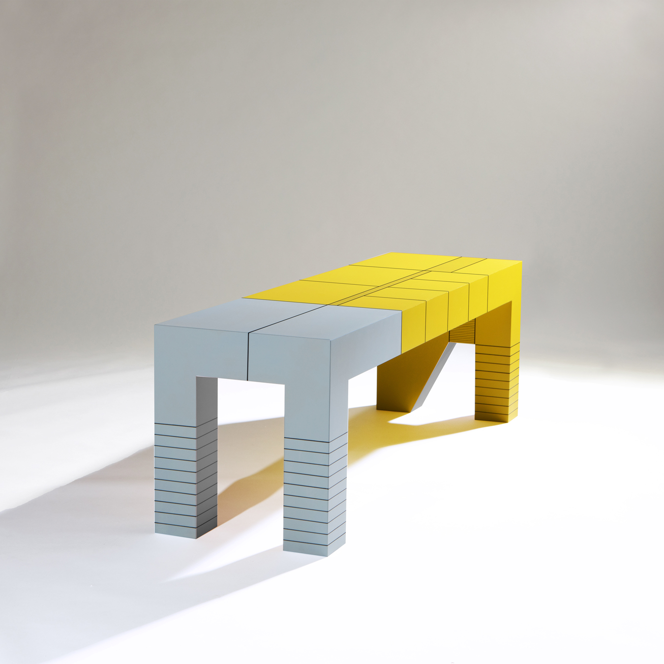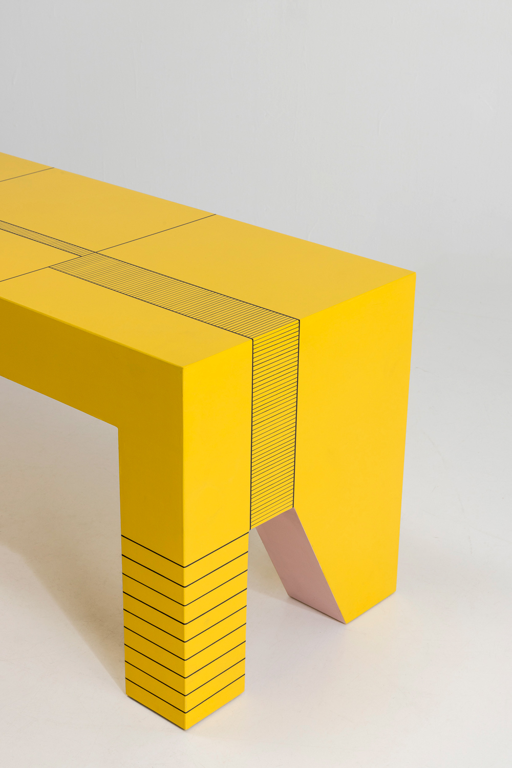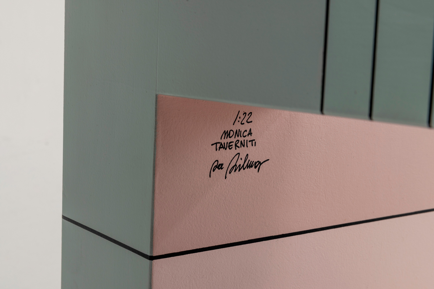 MT1 nasce come seduta e piano d’appoggio, realizzata in legno dipinto a mano e impreziosito da dettagli grafici tracciati a mano dall'autrice. Ogni pezzo viene successivamente protetto da una vernice trasparente opaca antigraffio e resistente all'acqua. Tonalità di colore create dall’autrice.