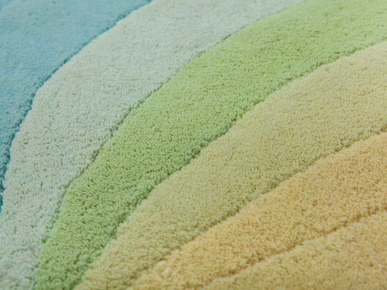 Tappeto contemporaneo dal marcato gusto pop. Constance Guisset disegna per Nodus il pattern di un'opera che diventa uno spettro di colori brillanti, passando dalle tonalità più calde a quelle più fredde, dai colori più pop a quelli più riflessivi. Realizzato in lana, il pezzo è taftato a mano da esperti artigiani indiani.