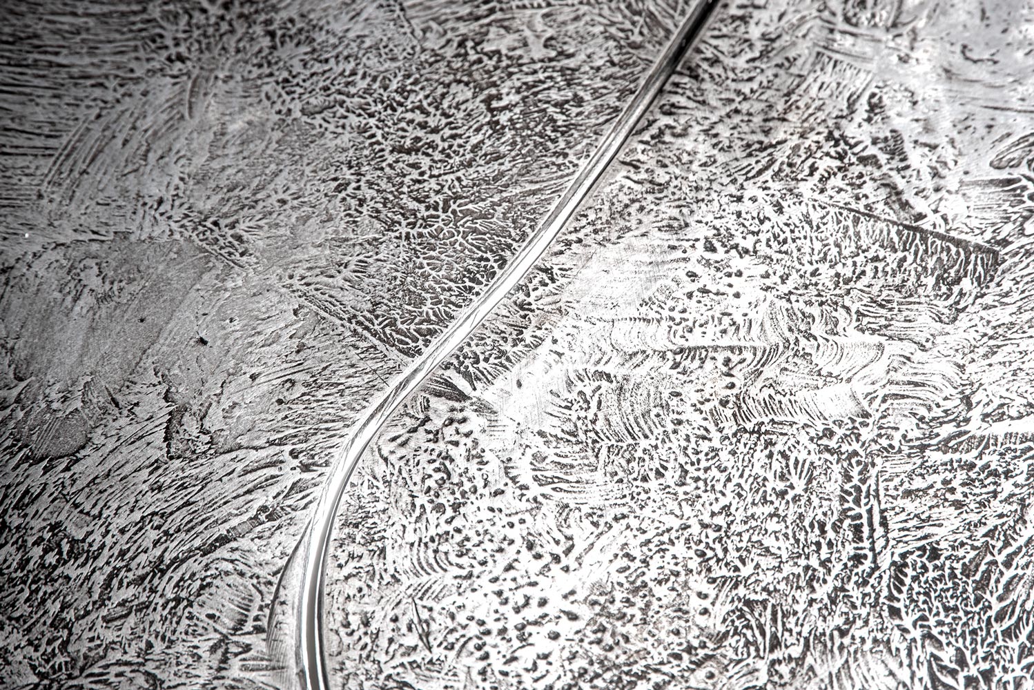 Al centro, un inserto in bronzo fuso cattura la luce e lo sguardo: punto di partenza ideale di un percorso visivo che ha infinite possibili destinazioni. 'Atavola diventa un’opera da attraversare, più che da osservare: un invito a perdersi nel gesto, nella materia, nella memoria.
