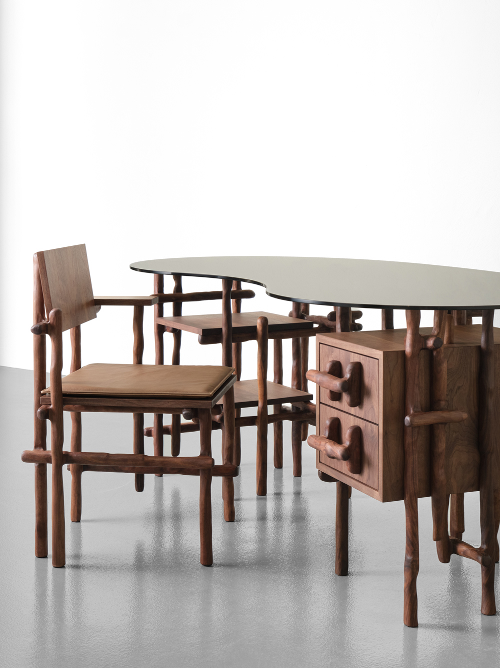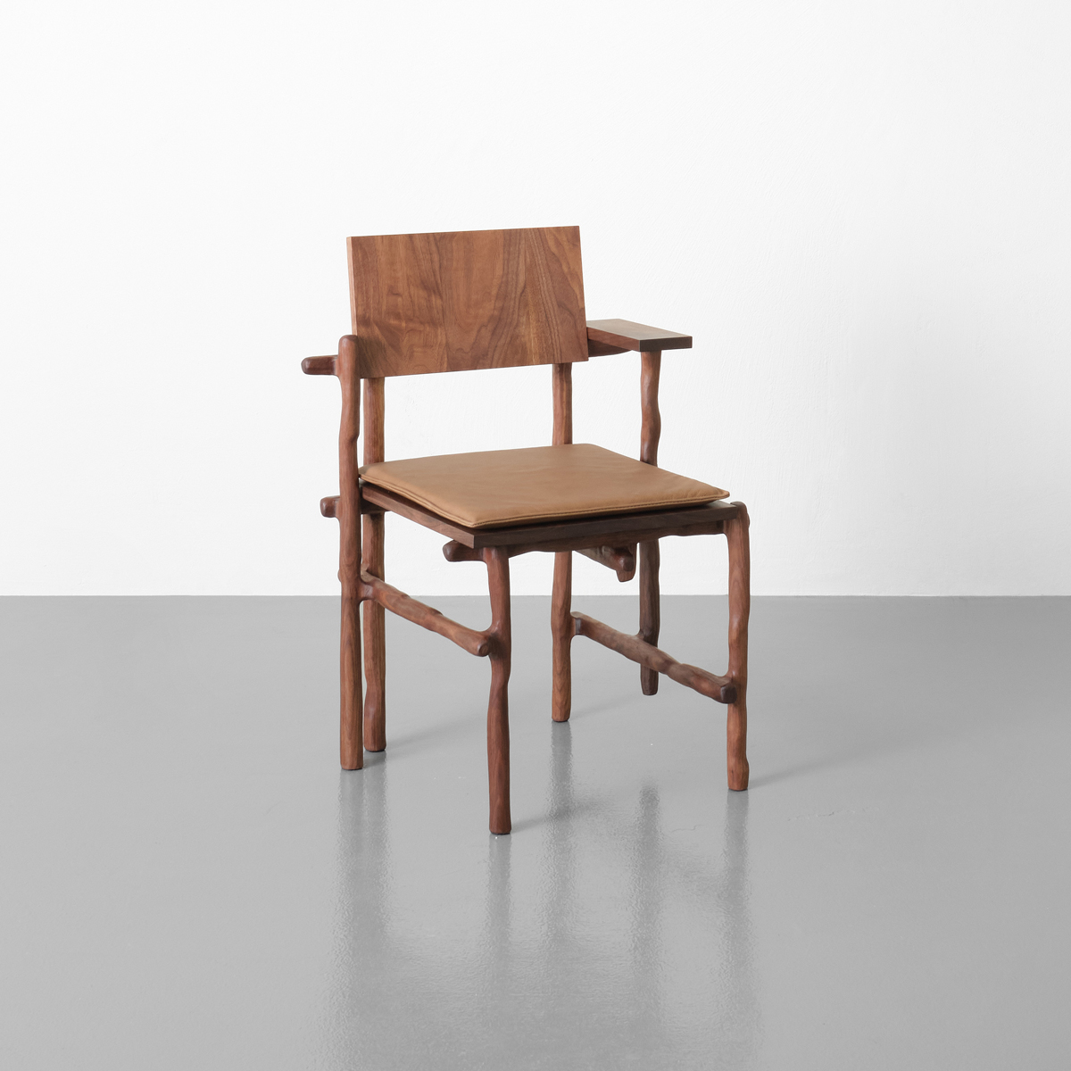 La sedia Hedera non è solo una fusione di linee pulite e organiche, ma anche di materiali. Giovani germogli, ramificandosi, formano una struttura di supporto in legno di noce. Dotata di cuscino in pelle removibile per un maggiore comfort. Finitura satinata ad olio.